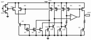一種高精度電流源的電路,是通過V/I變換,將由帶隙基準(zhǔn)電壓電路產(chǎn)生的與溫度和電源電壓無關(guān)的帶隙基準(zhǔn)電壓轉(zhuǎn)換成與溫度和電壓無關(guān)的高精度基準(zhǔn)電流,并通過高精度電流鏡結(jié)構(gòu)產(chǎn)生所需的鏡像電流,有效地抑制了由于 溫度、電源電壓、負載阻抗的變化及干擾對電流源的影響。
