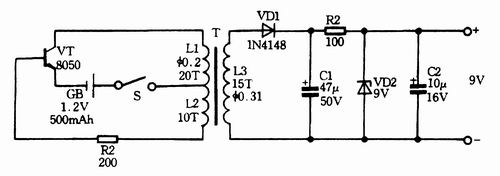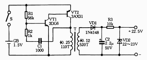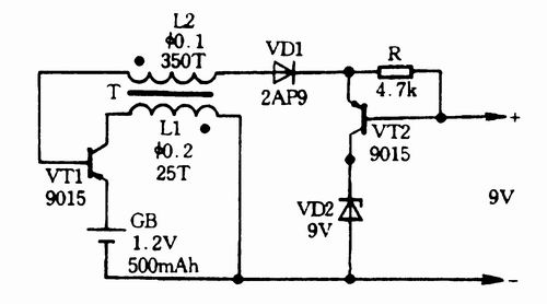 一、 1.2V升壓到9V電路圖 二、 1.5V升壓到15V電路圖 三、第二款1.2V升壓到9V電路圖 四、 1.5V升壓到22.5V電路圖 五、1.5V升壓到9V電路圖備注:L1、L2用∮0.1MM的漆包線在∮8MM的高頻磁環(huán)(從舊電子鎮(zhèn)流器或節(jié)能燈里拆用)上繞制而成。L1為6匝,L2為36匝。