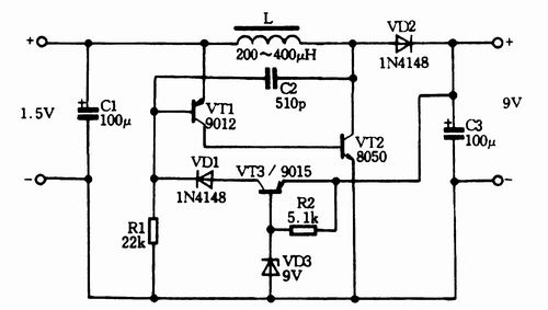 137 一種穩(wěn)壓型直流升壓電路(可將1.5V的電池升壓到9V)