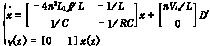 圖2? 移相全橋變換器的線(xiàn)性小信號(hào)電路模型 ??? 根據(jù)文獻(xiàn)[3]建立線(xiàn)性小信號(hào)模型的方法,建立準(zhǔn)線(xiàn)性小信號(hào)擾動(dòng)模型,只要不考慮輸入電壓變化對(duì)有效占空比總擾動(dòng)量的影響,就可得出其準(zhǔn)線(xiàn)性小信號(hào)擾動(dòng)模型,如圖3所示。 ??? 根據(jù)圖3可得出準(zhǔn)線(xiàn)性小信號(hào)擾動(dòng)模型的狀態(tài)方程,即 ??? 式中:x(t)為狀態(tài)變量,包括小信號(hào)濾波電感電流和小信號(hào)濾波電容電壓兩個(gè)狀態(tài)變量,分別等于輸出電感電流和輸出電壓與它們的設(shè)定值之差; ????? D′為小信號(hào)占空比擾動(dòng)輸入; ????? y(t)為輸出變量; ????? L為輸出濾波電感量; ????? C為輸出濾波電容量; ????? R為負(fù)載; ????? Vin為輸入電壓; ????? n為變壓器副邊與原邊的匝數(shù)比; ????? L1為諧振電感; ????? fs為開(kāi)關(guān)頻率。