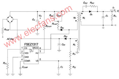 還有些廠家是在下取樣電阻上并一個小容量的電容來實現(xiàn)。同時建義大家吸收電路使用恢復(fù)時間約只有2us的IN4007再串一個百歐左右的電阻作吸收??梢詼p小漏感產(chǎn)生的振鈴,從而減小取樣誤差。得到較高采樣精度。次級圈數(shù)固定,輔助繞組固定,取樣精度高。比較器內(nèi)部精度也高,自然可以得到較高的輸出電壓精度。