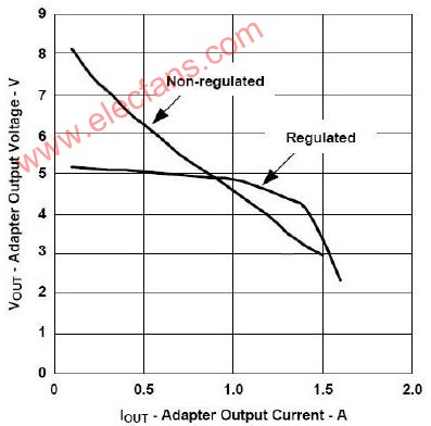 圖1:穩(wěn)壓及非穩(wěn)壓型AC適配器的特性??