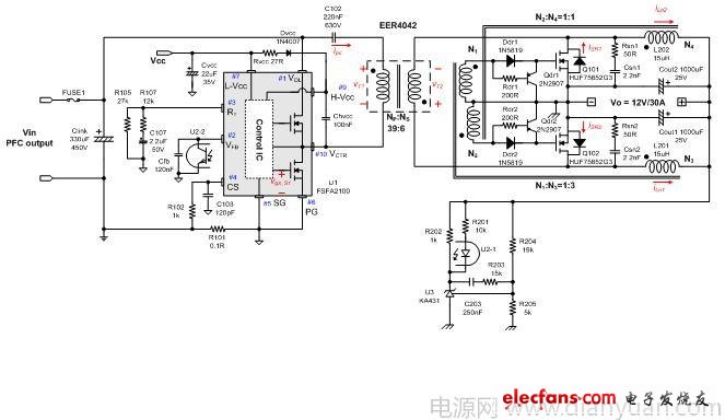 圖3 360 W PC電源的設(shè)計示例 (12 V, 30 A)