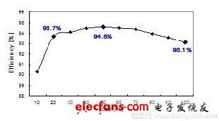 轉(zhuǎn)換器的效率如圖 7 所示,在額定負(fù)載為 20%、50% 和 100% 的情況下測得的效率分別為93.7%、94.6% 和 93.1%,這顯示了邊際性能,因而使用設(shè)計優(yōu)良的 PFC 和 DC-DC 級能夠達(dá)到85 PLUS 規(guī)范要求。