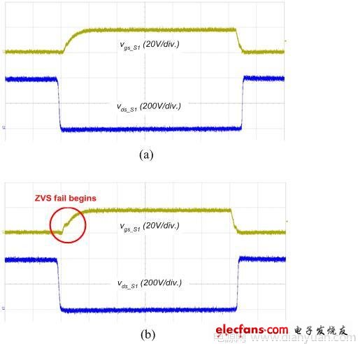 圖6 ZVS 運(yùn)作驗(yàn)證;(a) 30% 負(fù)載;(b) 20% 負(fù)載狀況