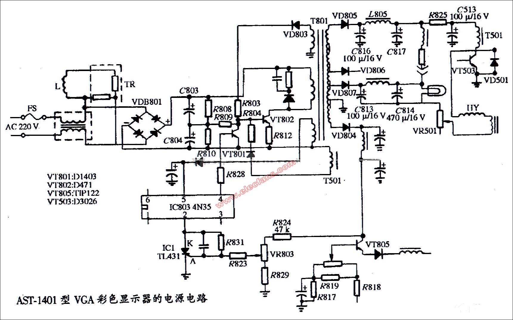 AST-3型彩色顯示器電源電路圖