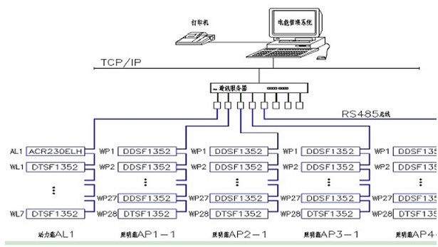 1458 通訊并遠(yuǎn)傳至后臺(tái),通過AcrelCloud-3200型遠(yuǎn)程預(yù)付費(fèi)電能管理系統(tǒng)實(shí)現(xiàn)配電回路用電的收費(fèi)和能效管理。
