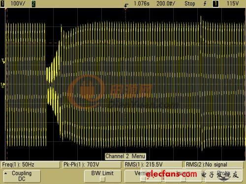 各位,一個問題想請教大家:一臺100kw逆變器,直流端輸入電壓正常后,逆變器啟動,觀察輸出電壓電流波形,電流發(fā)生嚴重畸變。用示波器觀察igbt驅(qū)動波形,發(fā)現(xiàn)下橋臂的pwm波有一段時間無波形。但是當