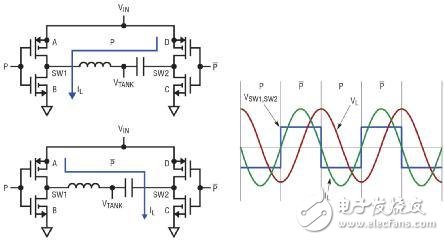 通過改變?nèi)珮蚴介_關(guān)電路的占空比,LTC4125 還調(diào)節(jié)串聯(lián) LC 網(wǎng)絡(luò)波形的脈沖寬度。通過調(diào)高占空比,串聯(lián) LC 網(wǎng)絡(luò)產(chǎn)生更大的電流,因此可向接收器負(fù)載提供更大的功率。