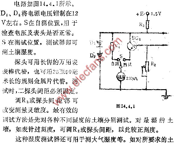 電子發(fā)燒友網(wǎng)>電子技術(shù)應(yīng)用>電子技術(shù)>電路圖>消費(fèi)類電子電路圖>簡(jiǎn)易土壤濕度測(cè)試器電路圖