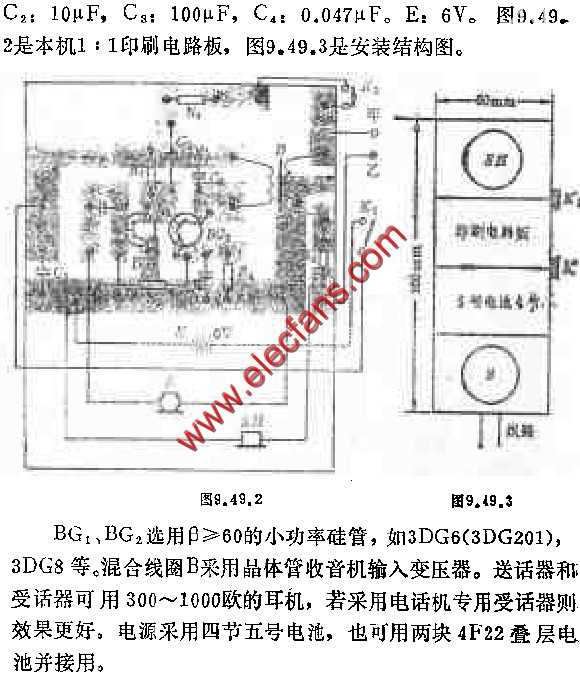 本文介紹的對講電話機(jī)是采用清倉電話機(jī)座改裝成的。本機(jī)使用效果良好,可作短距離通話設(shè)備,供工礦企業(yè)單