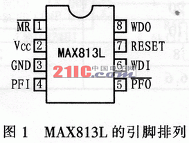 該系統(tǒng)采用Maxim公司推出的內(nèi)有“看門狗”(Watchdog)定時(shí)器的MAX813L型雙列直插式微處理器,其引腳排列如圖1所示。