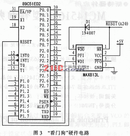 狗超時(shí)發(fā)出溢出脈沖,并通過單片機(jī)的RESET引腳使單片機(jī)復(fù)位。在這種方式中,看門狗能否可靠有效地工作,與硬件組成及軟件的控制策略都有密切的關(guān)系。