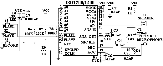 ISD1420組成的語音電路原理