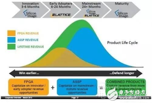 當萊迪思收購Silicon Image時,萊迪思執(zhí)行長Darin Billerbeck發(fā)表了一個‘生命周期’的故事。他解釋,這次的合并為“半導(dǎo)體產(chǎn)業(yè)開啟了一個好的開端,”即一家公司同時擁有具有互補性的FPGA和ASSP。