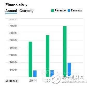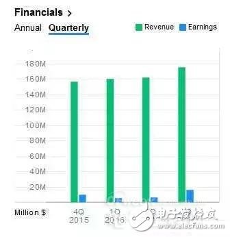 Silicon Labs從2015Q4-2016Q3的營收與盈余統(tǒng)計 (來源:Yahoo Finance)