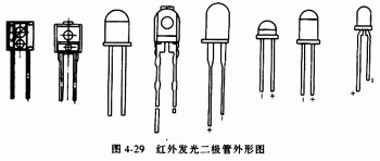 紅外發(fā)光二極管也稱紅外線發(fā)射二極管,它是可以將電能直接轉(zhuǎn)換成紅外光(不可見光)并能輻射出去的發(fā)光器件,主要應(yīng)用于各種光控及遙控發(fā)射電路中。其外形圖見圖4-29。