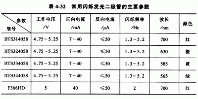 表4-32是幾種常用閃爍發(fā)光二極管的主要參數(shù)。?