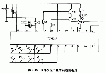 ???? 圖4-30是紅外發(fā)光二極管的應(yīng)用電路。