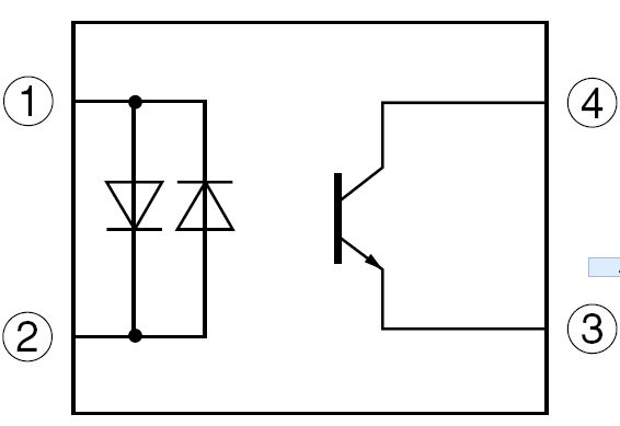 ???????????? 圖三 光電耦合器之內(nèi)部結(jié)構(gòu)圖 雙發(fā)光二極管輸入 三極管接收型 4腳封裝