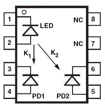 圖五 光電耦合器之內(nèi)部結(jié)構(gòu)圖 雙二極管接收型 6腳封裝