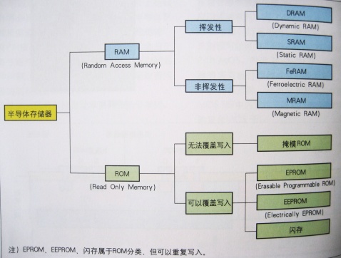 半導(dǎo)體存儲(chǔ)器大體分為可高速寫入和讀取的RAM(Random Access Memory)和主要進(jìn)行讀取用的ROM(Read Only Memory).
