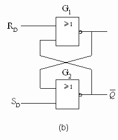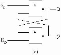 雙穩(wěn)態(tài)器件有兩類:一類是觸發(fā)器,一類是鎖存器。鎖存器是觸發(fā)器的原始形式。基本鎖存器由一對(duì)互耦的邏輯門組成【圖4.2.1(b)(c), 圖4.2.2(a)(b)】。