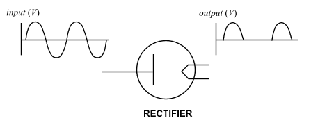 Fig. 3: AC OPERATION OF THE RECTIFIER. THE TUBE CONDUCTS ONLY WHEN THE INPUT SIGNAL IS POSITIVE.