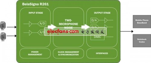 BelaSigna? R261 SoC針對語音捕獲的應(yīng)用,包括筆記簿電腦、手機(jī)、網(wǎng)絡(luò)攝像機(jī)及平板電腦。1.8 V電壓時(shí)的電流消耗小于16 mA,功耗僅為市場上眾多競爭產(chǎn)品的一半。