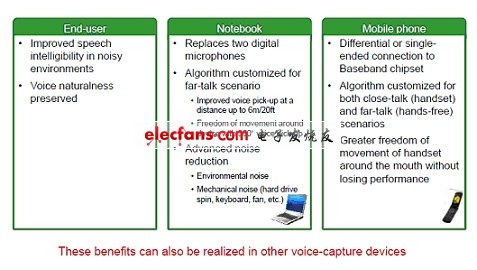 BelaSigna? R261 SoC簡單地直接插到數(shù)碼麥克風(fēng)接口 (DMIC) 或基帶芯片的麥克風(fēng)輸入。這SoC可用在關(guān)注成本的原設(shè)備制造商 (OEM) 設(shè)計(jì)中的便宜全向麥克風(fēng),令麥克風(fēng)的布設(shè)更靈活。生產(chǎn)線上不須調(diào)試麥克風(fēng),進(jìn)一步節(jié)省時(shí)間及成本。