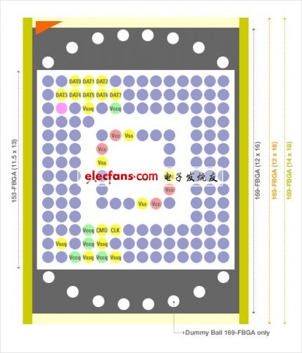 Samsung moviNAND (eMMC) 顛覆了過(guò)往Flash Storage配置設(shè)計(jì),以JEDEC標(biāo)準(zhǔn)FBGA封裝方式征服了手持式裝置的設(shè)計(jì),如以下圖示: