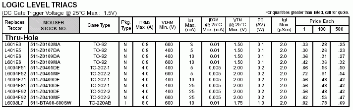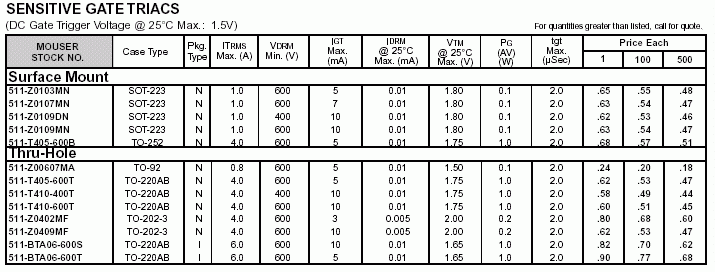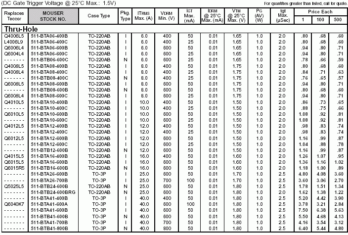 雙向可控硅參數(shù)(國外型號(hào))