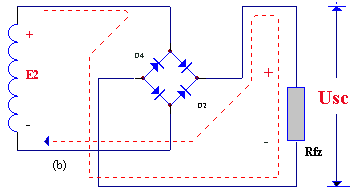 這種除去半周、圖下半周的整流方法,叫半波整流。不難看出,半波整說是以"犧牲"一半交流為代價而換取整流效果的,電流利用率很低(計算表明,整流得出的半波電壓在整個周期內(nèi)的平均值,即負(fù)載上的直流電壓Usc =0.45e2 )因此常用在高電壓、小電流的場合,而在一般無線電裝置中很少采用。