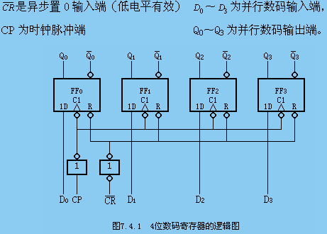 由維持阻塞D觸發(fā)器組成的4位數(shù)碼寄存器。