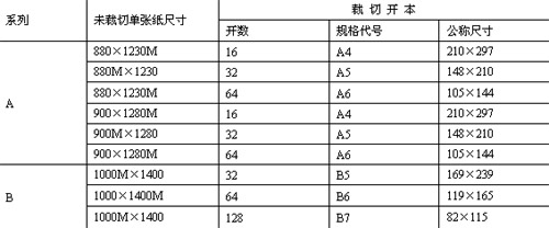 表二?:開本規(guī)格和成品尺寸(單位:mm)