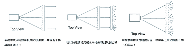 | A、光學(xué)屏幕定義 ???? 包含一個(gè)或多個(gè)光學(xué)鏡頭系統(tǒng)的屏幕稱(chēng)為光學(xué)屏幕,在鏡頭里面,光線(xiàn)被折射,方向發(fā)生了改變,只有背投屏幕能控制光線(xiàn)的方向,故只有背投屏幕才有光學(xué)屏幕;? 光線(xiàn)的方向取決于:屏幕材料的折射系數(shù)及鏡頭的剖面形狀。 B、光學(xué)菲涅爾鏡頭 ???? 傳統(tǒng)的鏡頭與菲涅爾鏡頭的區(qū)別如下圖所示: ![]() C、菲涅爾鏡頭與柱狀鏡頭工作原理及結(jié)合后工作原理示意圖 ![]() ???? 菲涅爾與霧狀透鏡結(jié)合的屏幕也是DNP公司九種屏幕系列中的一種。它是專(zhuān)門(mén)為某些特殊應(yīng)用而開(kāi)發(fā)的,幾年前就已投放市場(chǎng)。但由于視角不如廣角屏幕系列,適用面較窄,DNP公司僅將其作為一種補(bǔ)充產(chǎn)品。 D、雙層屏幕與單層屏幕的區(qū)別 ![]() ???? 有比單層屏幕更好的中心到邊角的亮度均勻性; ???? 非常適用于短距離投影; ???? 非常適用于多屏幕拼接。 E、DNP公司雙層屏幕增高對(duì)比度的兩種濾光系統(tǒng)工作原理圖 第一種:高對(duì)比度柱狀鏡頭光學(xué)原理:(UCS/RUCS屏幕) ???? 在兩層透鏡之間的光學(xué)鏡頭表面覆蓋了一層黑色素層,可吸收環(huán)境光,柱狀的鏡頭能拾取投影機(jī)的光線(xiàn),并傳送到觀視者,而前面的環(huán)境光則會(huì)被吸收。? 第二種:高對(duì)比度玻珠光學(xué)原理:(BB屏幕) ???? 這種技術(shù)是使用細(xì)小的黑玻珠,并在一側(cè)噴涂上一層黑色素層。黑玻珠能拾取投影機(jī)的光線(xiàn),并傳送至觀視者。照在屏幕上的環(huán)境光則被直接吸收掉。 |