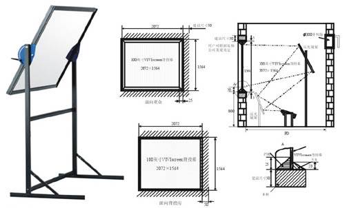 下圖為100英寸背投工程的反射系統(tǒng)的設(shè)計(jì)圖: