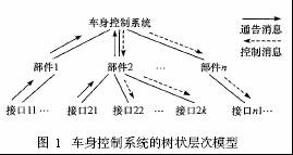 ??? 車身控制系統(tǒng)由多個(gè)部件組成,每個(gè)部件包含一個(gè)或多個(gè)接口,形成如圖1所示的樹狀層次模型。