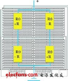 現(xiàn)代傳感器系統(tǒng)主要由兩個元件組成 —基本傳感器和信號處理專用集成電路 (ASIC)(圖 1)。現(xiàn)已證明,后來由 Lord Klevin 于 1857 年發(fā)現(xiàn)的各向異性磁阻效應(yīng)特別適用于檢測磁場。首先考慮通常具有多種磁疇結(jié)構(gòu)的鐵磁性材料。這些稱之為韋斯磁疇的結(jié)構(gòu),其內(nèi)部磁化的方向彼此不同。如果將這種材料平鋪為一薄層,那么磁化矢量處于材料層平面方向。另外,可較精確地假設(shè)只存在一個磁疇。當(dāng)這種元件暴露于外部磁場中時,后者會改變內(nèi)部磁化矢量的方向。如果同時一股電流通過該元件,就會產(chǎn)生電阻(圖 2),這取決于電流和磁化之間的角度。當(dāng)電流和磁化方向彼此成直角時,電阻最小,當(dāng)二者平行時,電阻最大。電阻變化的大小取決于材料。鐵磁性材料的性質(zhì)也決定對溫度的依賴性。電阻最大變化為 2.2% 并且對溫度變化反應(yīng)良好的最佳合金是 81% 的鎳和 19% 的鐵組成的合金。恩智浦所有傳感器系統(tǒng)中的基本傳感器都采用這種強(qiáng)磁鐵鎳合金。在惠斯登電橋電路中單獨(dú)配置幾個 AMR 電阻,以增強(qiáng)輸出信號并改善溫度反應(yīng)特性。此電路也可在制造過程中進(jìn)行微調(diào)。圖 3 顯示如何在裸片上配置 AMR 元件。