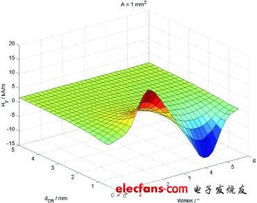 要開發(fā)傳感器系統(tǒng),首先必須對預期的磁輸入信號有一個總體了解。首先要了解編碼器輪和傳感器頭上永磁體的標準規(guī)格,以及預期尺寸和公差。通過 ANSYS 方法進行 FEM 仿真可確定磁場。這里就有對編碼器輪、傳感器元件和磁體進行建模的問題(圖 5)。然后便可根據(jù)傳感器元件和編碼器輪之間的距離,確定與之呈函數(shù)關系的磁場強度。圖 6 是傳感器橋上的磁輸入信號與距離呈函數(shù)關系的三維圖示。很容易看出輸入信號呈正弦曲線,信號振幅隨距離增加而明顯減小。除了距離之外,位置偏離也會導致振幅減小。例如,如果傳感器頭不在編碼器輪前面的中心位置,那么信號振幅也會減小。根據(jù) FEM仿真方法,這樣也可將機械規(guī)范轉(zhuǎn)化成預期磁變量。與氣隙變化不同,傾斜會導致偏移,這同樣會影響系統(tǒng)的正常運轉(zhuǎn)。FEM 仿真也可以預估其造成的影響(圖 7),而且結果可直接轉(zhuǎn)化為可容許的位置公差。