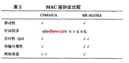 不過(guò)對(duì)于車載自組網(wǎng)的特殊性,預(yù)約式的同步MAC協(xié)議效果可能更好些。表2對(duì)CSMA/CA 和RR—ALOHA 這兩種MAC協(xié)議進(jìn)行了簡(jiǎn)單的比較。