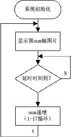 單片機系統(tǒng)的軟件編程流程圖如圖5所示。該實例相對比較簡單,系統(tǒng)初始化后(包括單片機的串口初始化、發(fā)送開啟液晶屏背光指令),只需通過串口定時發(fā)送圖片顯示的指令幀,即可實現指針動態(tài)移動的表盤顯示效果。