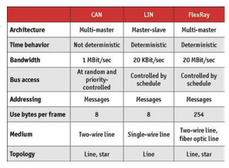 表1 串行總線系統(tǒng)CAN、LIN和FlexRay總結(jié)