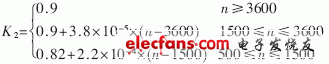 電機在不同的轉速與轉矩運行時,實測的效率曲線類似指數函數。為了處理方便,可將效率曲線分三段線性擬合成如下函數(擬合誤差不超過5%,其中n為電機瞬時轉速):