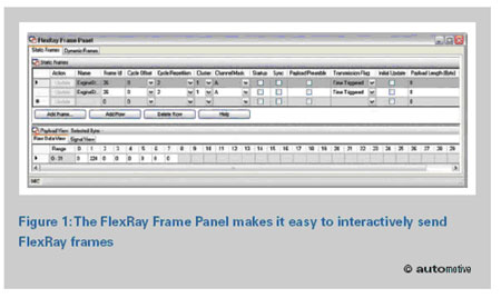 ????? 在開發(fā)FlexRay網(wǎng)絡(luò)和ECU的過程中,工程師經(jīng)常要面對一些具有挑戰(zhàn)性的任務(wù),例如總線啟動階段仿真、ECU測試和網(wǎng)絡(luò)仿真。FlexRay工程師可以利用CANoe.FlexRay有效地完成這些任務(wù)。