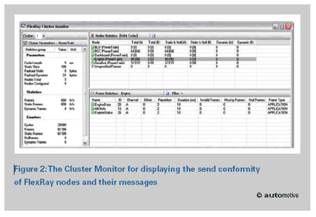 ????? FlexRay集群監(jiān)視器也可以用于離線模式,從而對記錄文件進行分析。更多的測試任務(wù)可以通過CAPL編程來實現(xiàn)。
