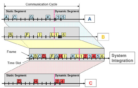 ????盡管啟動每個新系統(tǒng)必然會很困難,但是不同的部件還是比較快地集成到了一起。“時間觸發(fā)通信是將不同供應(yīng)商的部件和軟件代碼集成起來的理想平臺”,在Robert Bosch公司汽車網(wǎng)絡(luò)部門工作的Florian Hartwich說。他還協(xié)助FlexRay協(xié)會制定協(xié)議,之前參與了CAN和TTCAN的開發(fā)和標準化工作。因為每個應(yīng)用系統(tǒng)都在預(yù)先規(guī)定的時刻發(fā)送報文并且知道該在何時接收何報文,所以在之后可以更為容易地將部件加入到分布式系統(tǒng)中。