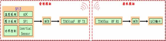 1.發(fā)射模塊:(1)感測單元(2)訊號處理(3)RF模塊