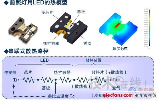 圖3:前照燈用白色LED和散熱路徑(圖片由市光工業(yè)提供)