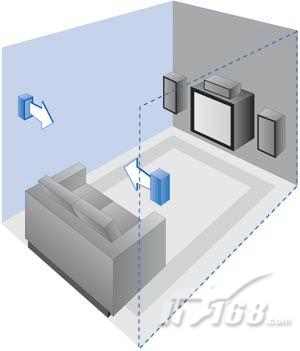 環(huán)繞揚(yáng)聲器放置在座位的兩側(cè)稍稍靠后